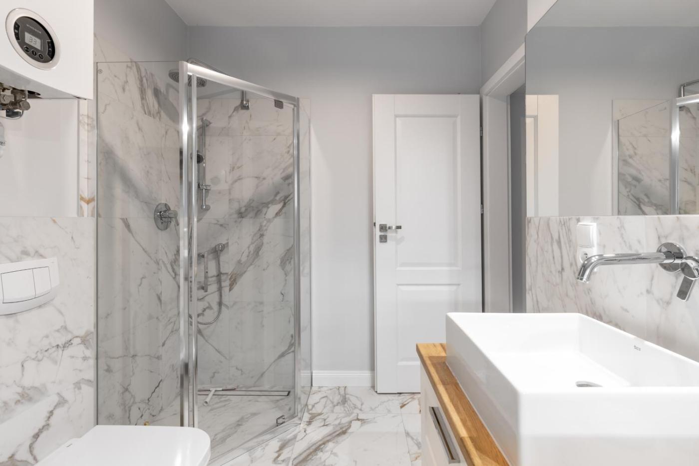 Apartament z 1 sypialnią. This spacious apartment features 1 living room, 1 separate bedroom and 1 bathroom with a walk-in shower and a bath. The well-fitted kitchen has a stovetop, a refrigerator, a dishwasher and kitchenware. Boasting a terrace with garden views, this apartment also features a washing machine and a flat-screen TV with satellite channels. The unit has 2 beds. Apartament - 5 osobowy. Powierzchnia pokoju ok.: 70 mkw.