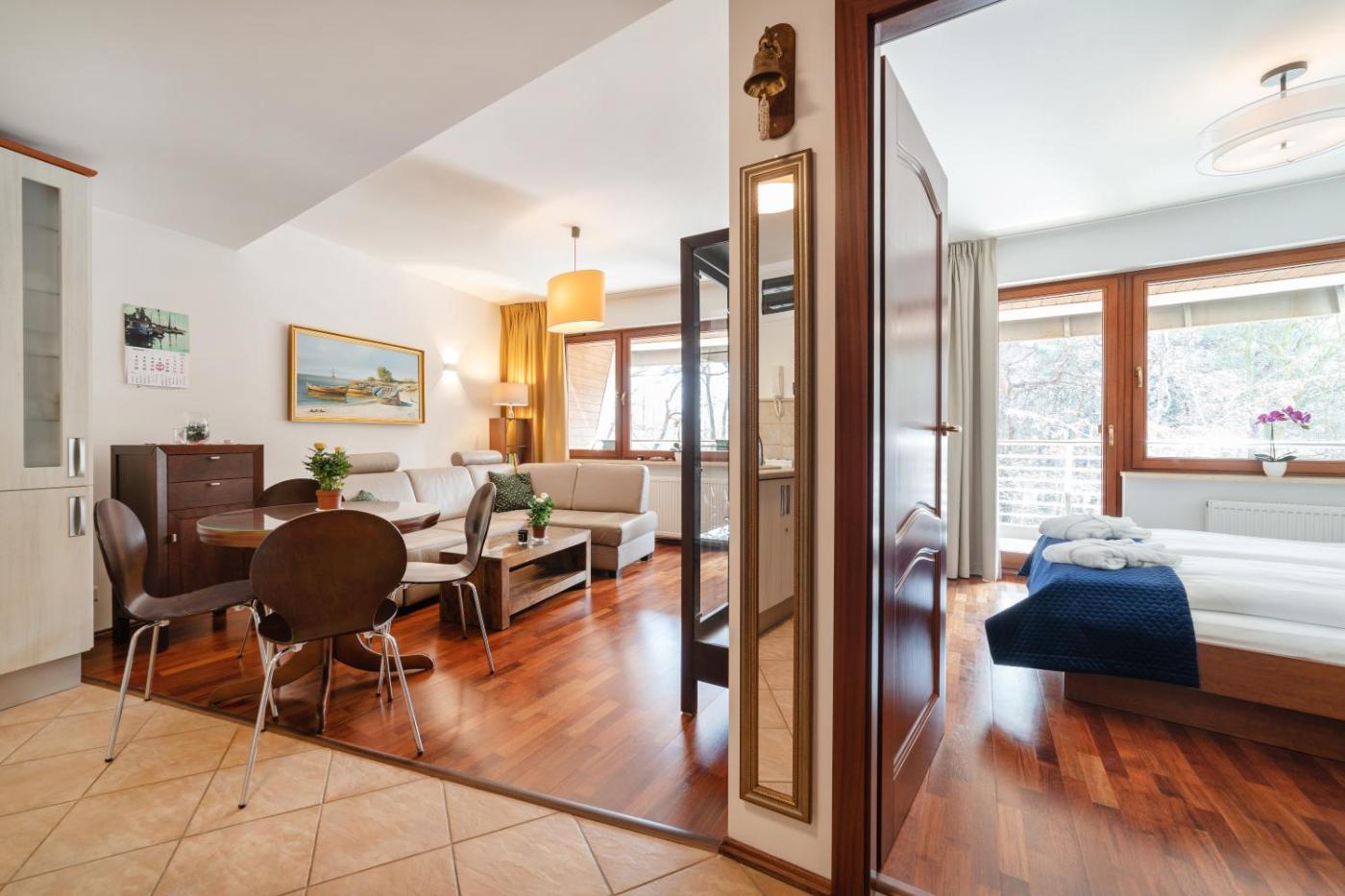 Apartament z 1 sypialnią. Featuring a private entrance, this apartment is comprised of 1 living room, 1 separate bedroom and 1 bathroom with a shower and a hairdryer. In the well-fitted kitchenette, guests will find a stovetop, a refrigerator, a dishwasher and kitchenware. Boasting a terrace with garden views, this apartment also offers a tea and coffee maker and a flat-screen TV. The unit offers 2 beds. Apartament - 4 osobowy. Powierzchnia pokoju ok.: 38 mkw.