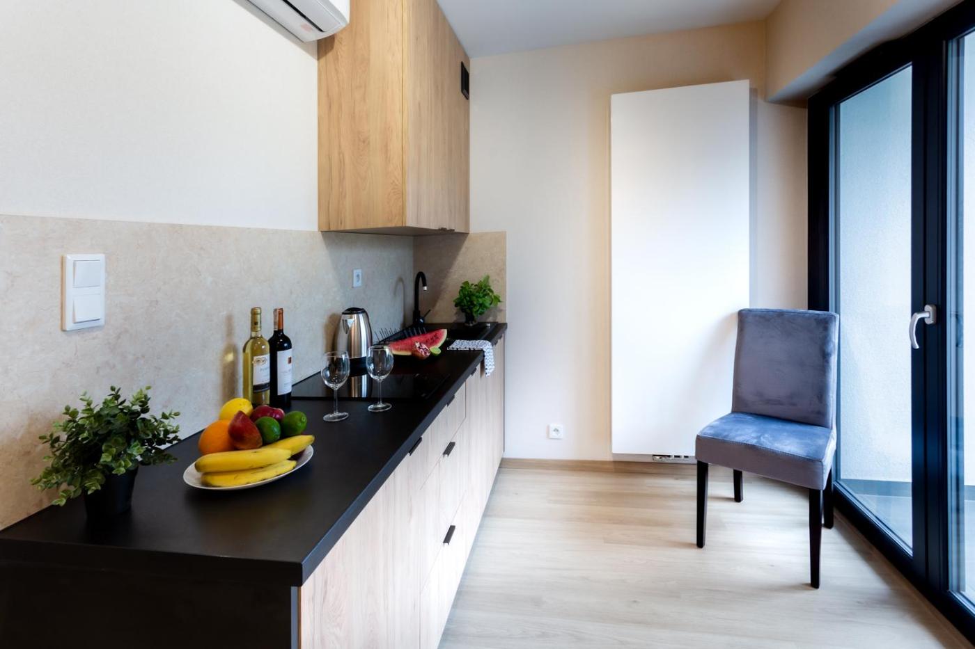 Studio z łóżkiem typu queen-size. Guests can make meals in the kitchenette that is fitted with a stovetop, a refrigerator, kitchenware and a microwave. The studio offers air conditioning, a private entrance, as well as a private bathroom featuring a walk-in shower and a hairdryer. The unit offers 1 bed. Studio - 2 osobowy. Powierzchnia pokoju ok.: 23 mkw.